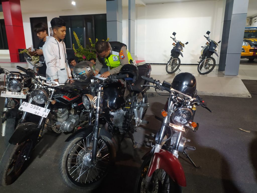 Tercatat, ada 41 unit sepeda motor yang terjaring razia gabungan pada Minggu (17/03/2023) dini hari itu. Dengan rincian, sebanyak 36 unit sepeda motor dilakukan penilaian. Lantaran menggunakan knalpot brong, dan 5 unit sepedah motor mendapat sanksi teguran.