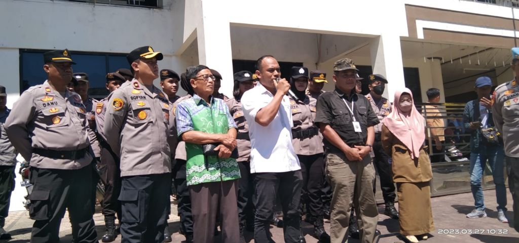 Ketua DPRD kabupaten Kotabaru, Syairi Mukhlis,S.Sos, langsung menemui para pedagang yang menggelar aksi demo damai didepan halaman kantor DPRD Kotabaru yang dihadiri Wakapolres Kotabaru, Kompol Sofyan, Slk,H.Masiara anggota DPRD dari fraksi PKB dan Ketua Pedagang serta Perwakilan Pedagang Adi Sutomo.