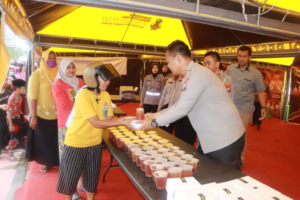 Kapolresta Sidoarjo Komisaris Besar Polisi Kusumo Wahyu Bintoro, Wakapolresta Sidoarjo AKBP Deny Agung Andriana serta pejabat utama Polresta Sidoarjo turun langsung membagikan aneka takjil dari Polresta Sidoarjo.