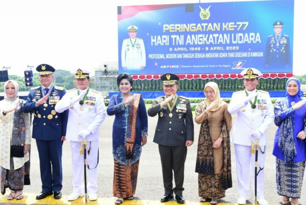 JAKARTA (Realita)-Jenderal TNI Dr. Dudung Abdurachman selaku Kepala Staf Angkatan Darat (Kasad) dan Ketua Umum Persit Kartika Chandra Kirana Ny. Rahma Dudung Abdurachman menghadiri Peringatan HUT ke-77 TNI Angkatan Udara yang digelar di Landasan Udara (Lanud) Halim Perdana Kusuma, Jakarta, Minggu (9/4/2023).
