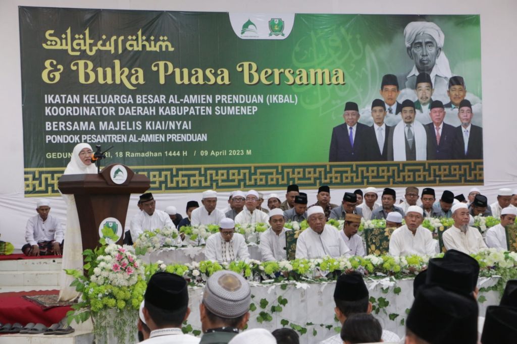 SUMENEP (Realita)- Wakil Bupati Sumenep, Hj. Dewi Khalifah menghadiri acara silaturrahim dan buka puasa bersama Ikatan Keluarga Besar Al-Amien Prenduan di Gedung Korpri Jalan Dr. Cipto Desa Kolor, Kecamatan Kota.