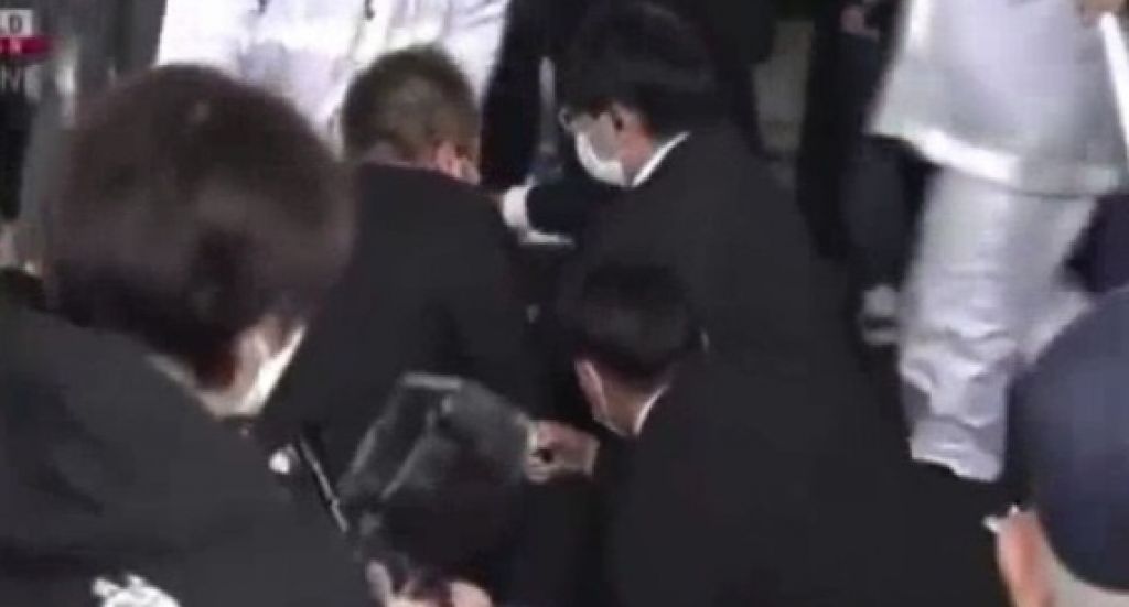 Polisi disebut telah menahan seorang pria di tempat kejadian. Rekaman NHK menunjukkan kerumunan orang melarikan diri ketika beberapa petugas polisi tampak menjepit seorang pria ke tanah sebelum mengeluarkannya dari tempat kejadian. Pria itu diduga berusia 20-an atau 30-an