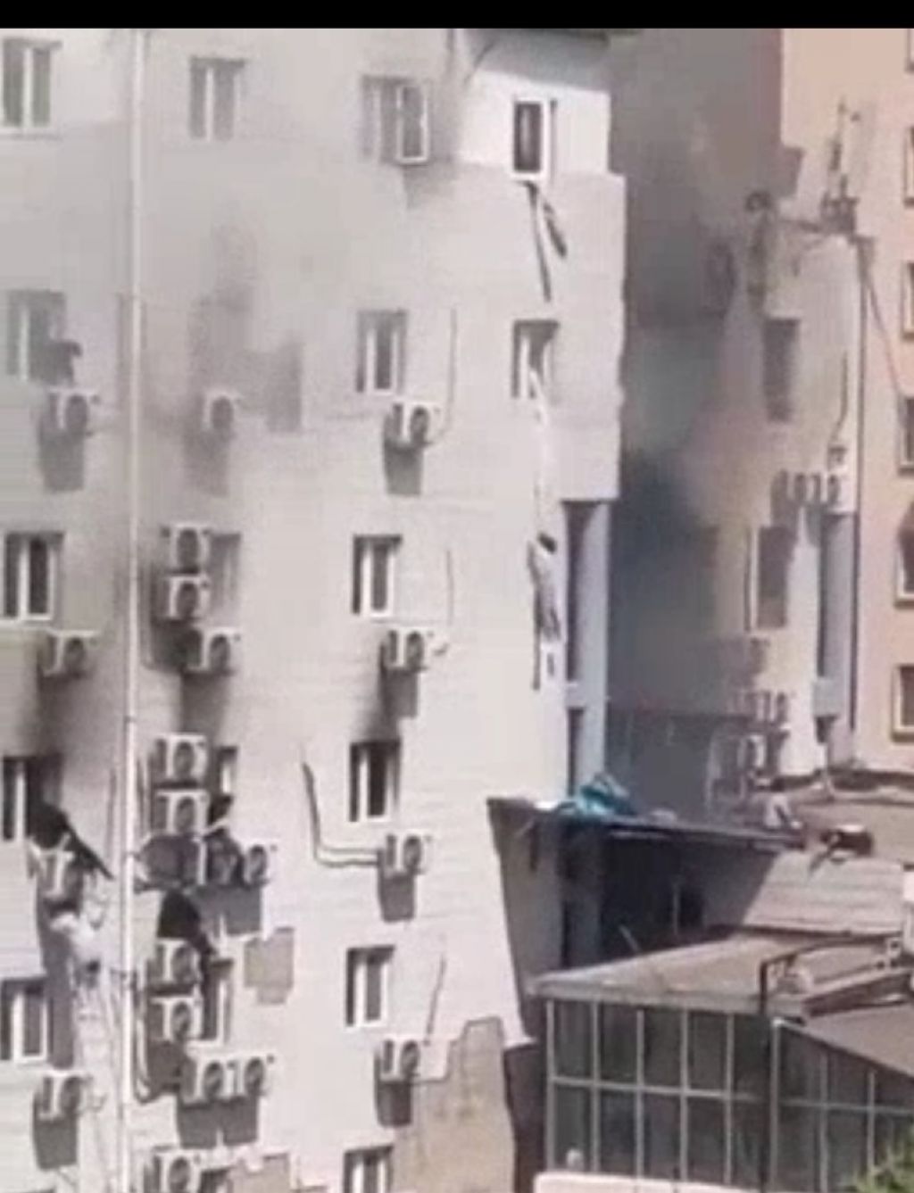 Rekaman video yang beredar di media sosial menunjukkan pasien yang mencoba menyelamatkan diri dari kobaran api memanjat keluar jendela dan menggunakan seprai untuk turun ke tempat yang aman dari lantai atas