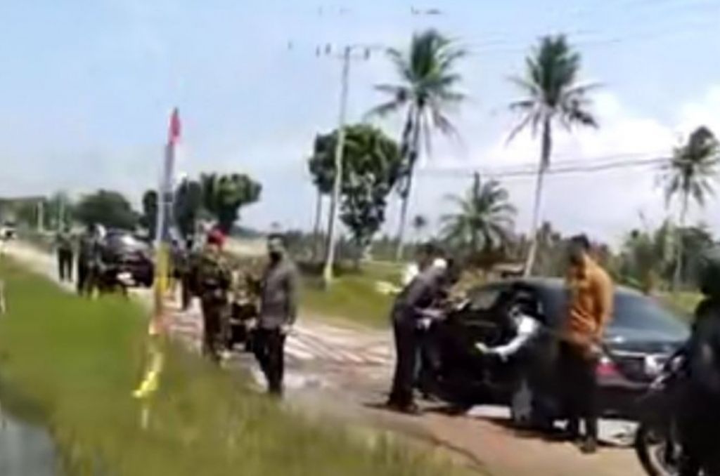 Terdengar dalam sebuah rekaman yang diunggah oleh akun Twitter @paltiwest yang dibagikan pada 5 Mei 2023, warga yang merekam menjelaskan kondisi Jokowi yang tengah berusaha untuk turun dari mobil yang sedang tersangkut di jalan rusak itu.