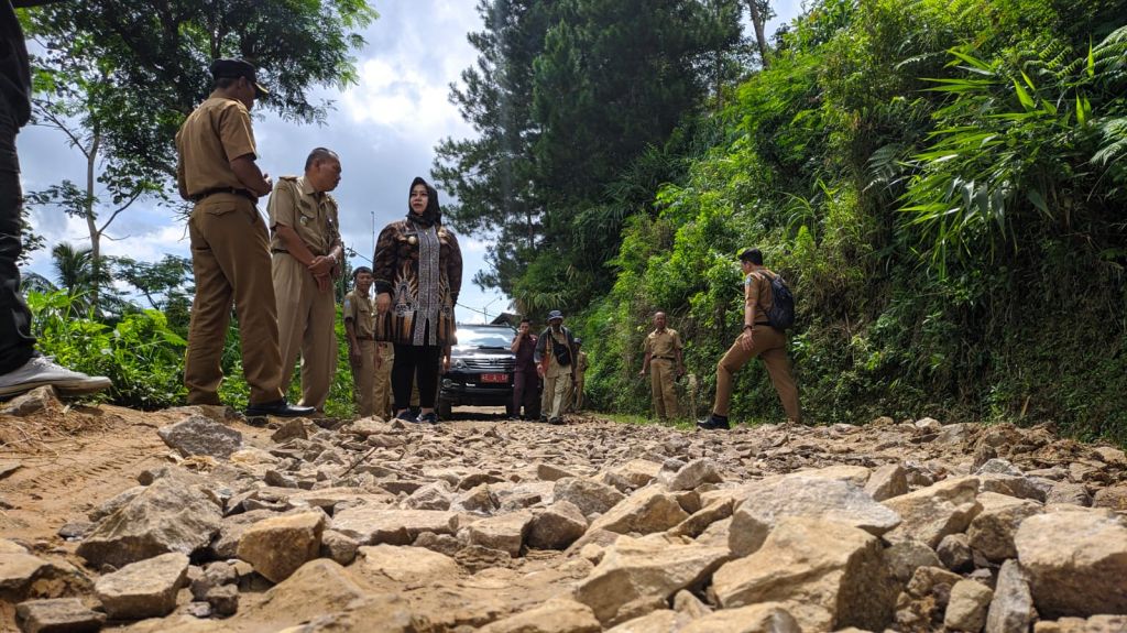 PONOROGO (Realita)- Rusaknya jalan kabupaten di Desa Baosan Kidul Kecamatan Ngrayun, yang viral di media sosial, usai sejumlah warga secara swadaya memperbaki jalan dengan menguruk jalan rusak menggunakan batu. Membuat Plt Bupati Ponorogo Lisdyarita turun ke lapangan.