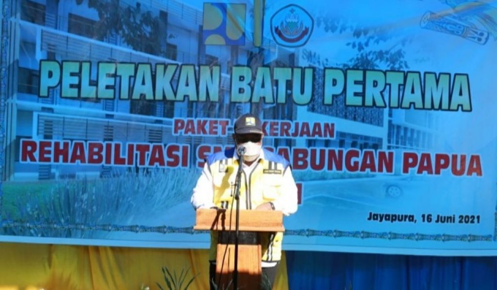 JAYAPURA (Realita)– Kementerian Pekerjaan Umum dan Perumahan Rakyat (PUPR) melalui Direktorat Jenderal (Ditjen) Cipta Karya telah memulai kegiatan rehabilitasi SMA Gabungan Jayapura yang ditandai dengan peletakan batu pertama (groundbreaking) pada hari Rabu (16/6/2021). Kegiatan rehabilitasi ini bertujuan untuk meningkatkan pelayanan kegiatan belajar mengajar khususnya bagi para pelajar di Kota Jayapura.