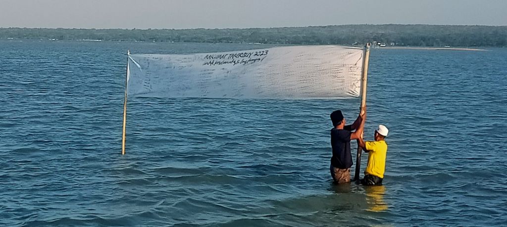 ”Dan hari ini, setelah Istighasah sebagian warga langsung bergerak ke Pantai untuk melakukan pemasangan Maklumat sebagai bentuk perlawanan. Air laut boleh surut, tapi perjuangan haram untuk surut,” katanya.