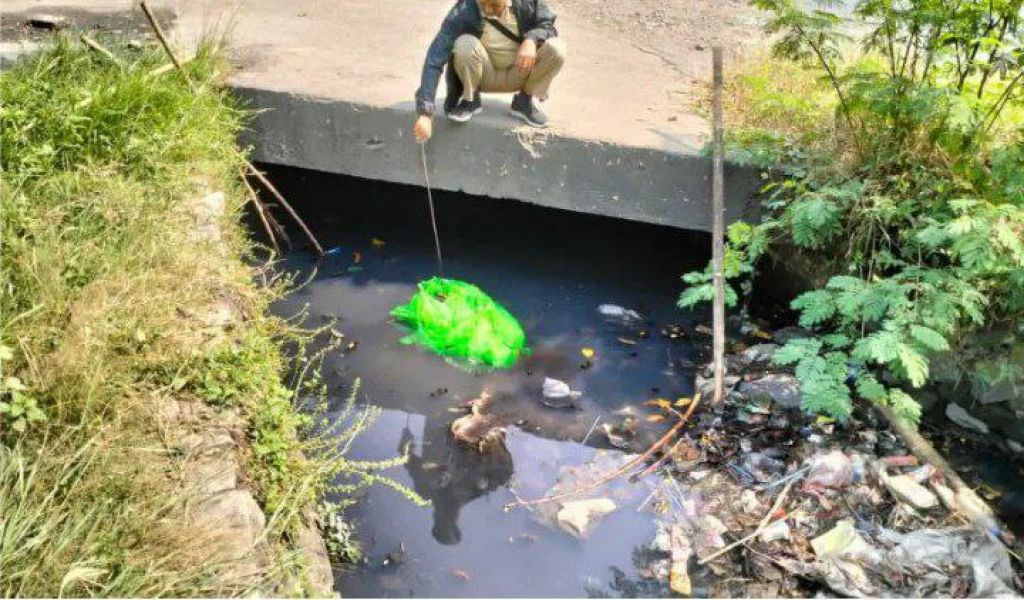 Wanita paruh baya itu mengaku kepada polisi kalau sudah melihat kantong plastik itu sejak Jumat (9/6/2023), sekitar pukul 06.00 WIB di sungai kecil belakang pos polisi dekat jalan layang Trosobo.