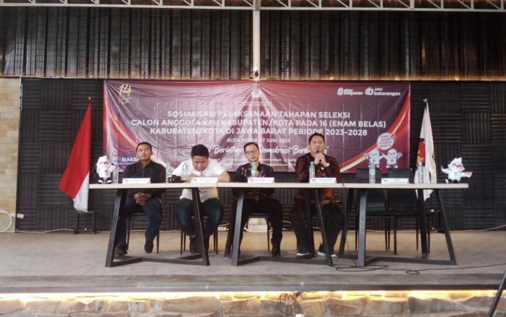 DEPOK (Realita)- Pendaftaran Seleksi Calon Anggota KPU sebanyak 16 Kabupaten/kota Provinsi Jawa Barat periode 2023-2028 resmi di buka. Pengumuman ini disampaikan timsel dalam sosialisasi pelaksanaan tahapan seleksi calon anggota KPU Kab/Kota di Cilodong, Depok pada hari Sabtu (16/6/2023).