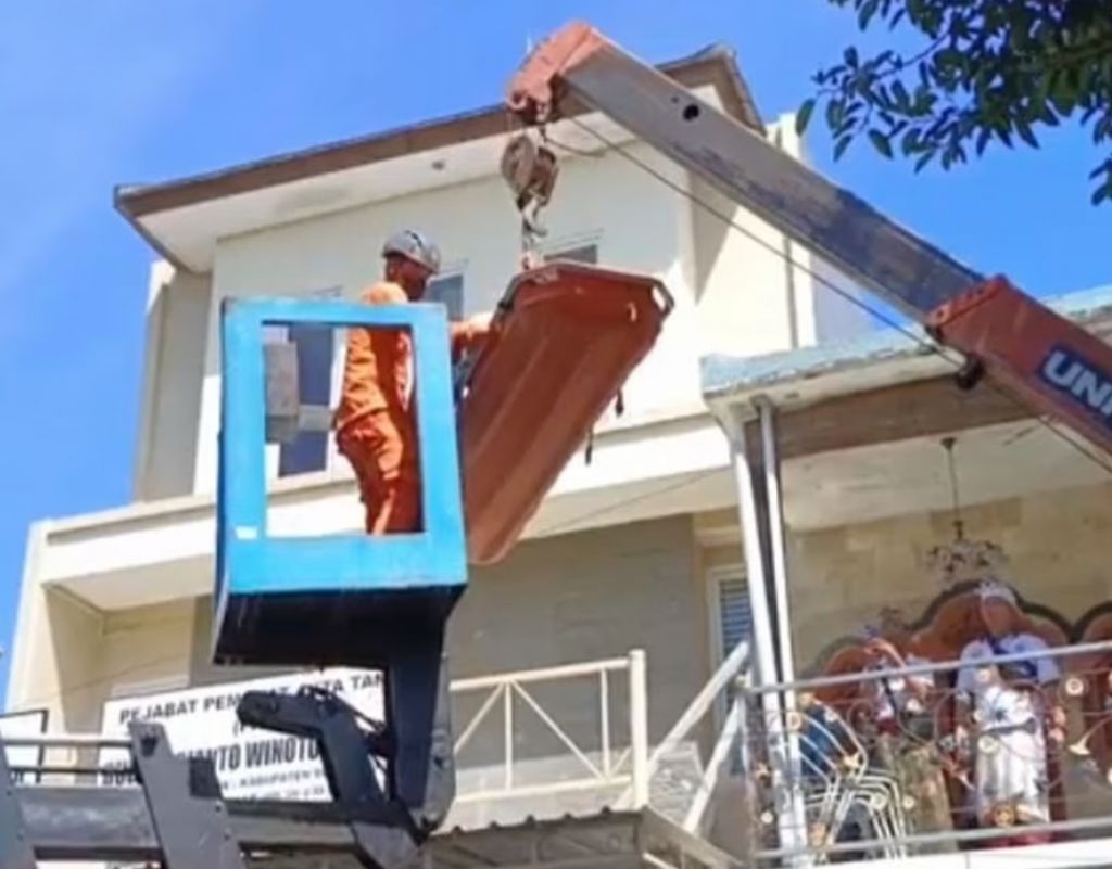 Petugas sempat kesulitan saat mengevakuasi MWA. Semula, sang dokter hendak dievakuasi menggunakan tangga lantaran terbaring di kamar lantai dua. Namun, karena badannya terlalu gemuk, petugas akhirnya masuk ke kamar MMA lewat atap rumah.