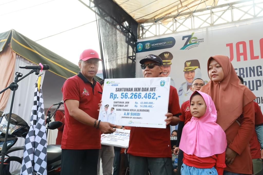 " Tiga karyawan koperasi meninggal saat menjalankan pekerjaan mereka. Ini bukti pemerintah hadir untuk menjamin keberlangsungan hidup keluarga yang ditinggalkan," akunya.