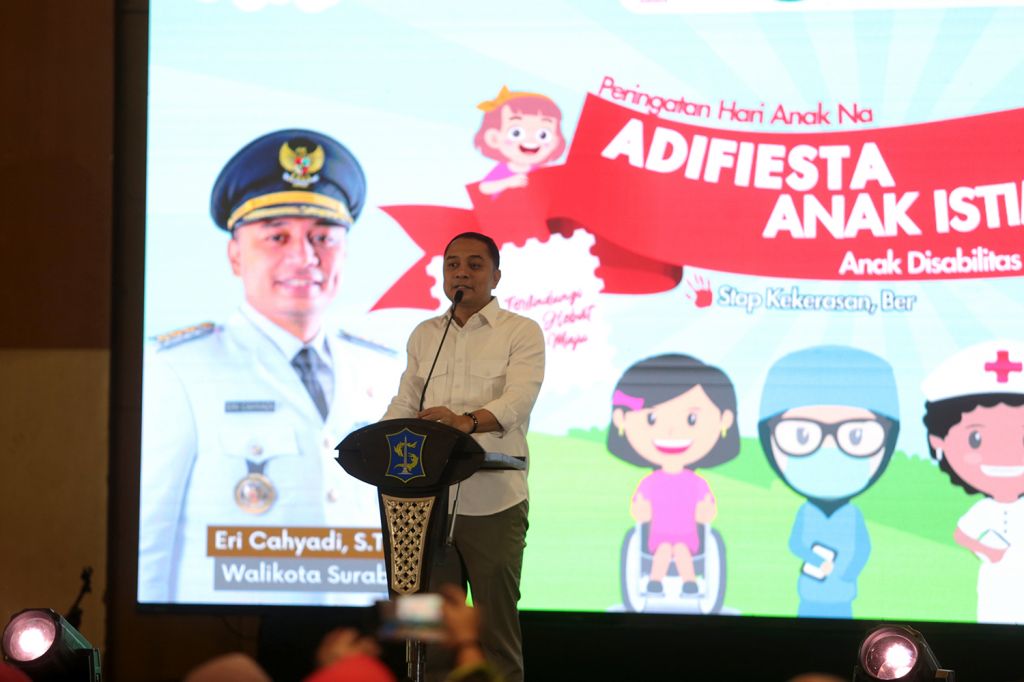 Di samping itu, Kepala Dinas Pemberdayaan Perempuan dan Perlindungan Anak serta Pengendalian Penduduk dan Keluarga Berencana (DP3A-PPKB) Ida Widayati mengatakan, acara Adifiesta Anak Istimewa bertajuk “Anak Disabilitas Kuat, Surabaya Hebat” ini digelar dalam rangka memperingati HAN 2023. Selain itu, kegiatan ini merupakan bagian dari wujud Surabaya Kota Layak Anak Paripurna.