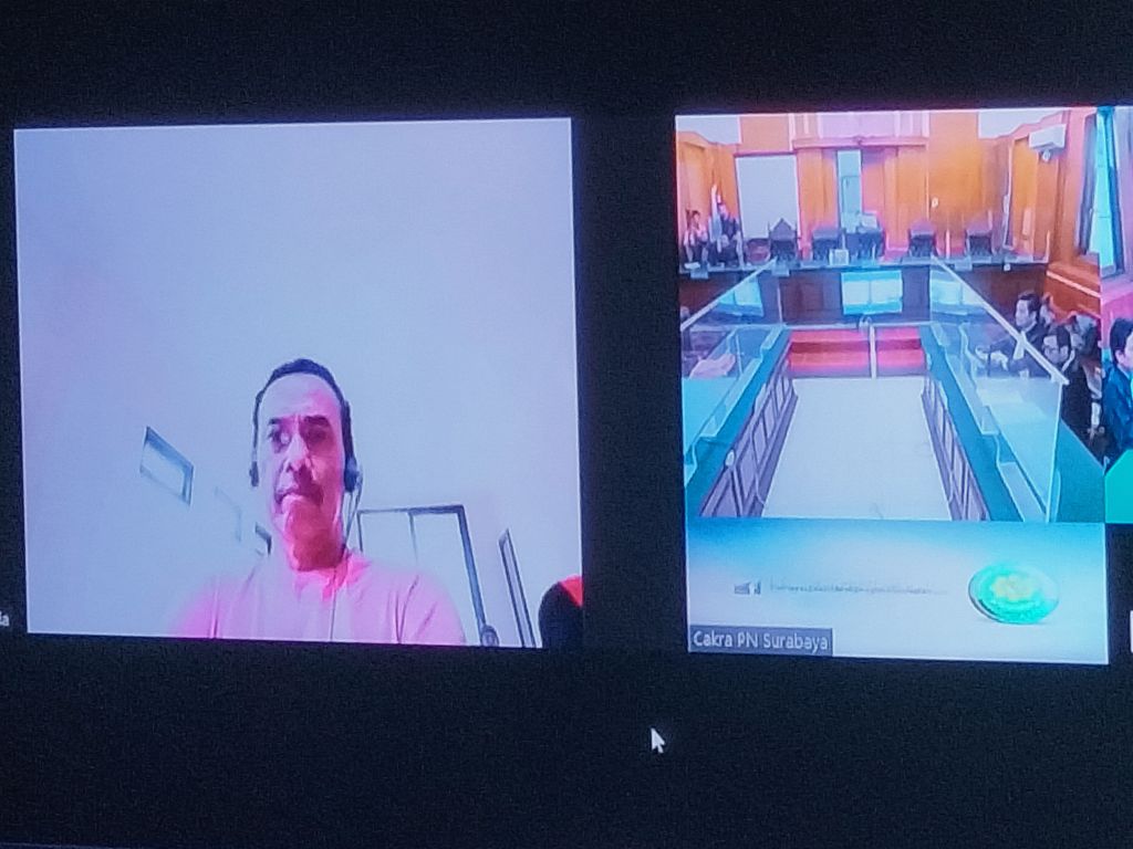 SURABAYA (Realita)- Mantan wali kota Blitar, Samanhudi Anwar, terdakwa perampokan rumah dinas wali kota Blitar menjalani sidang perdana di Pengadilan Negeri (PN) Surabaya, (20/7/2023). Samanhudi menjalani sidang tersebut secara daring.