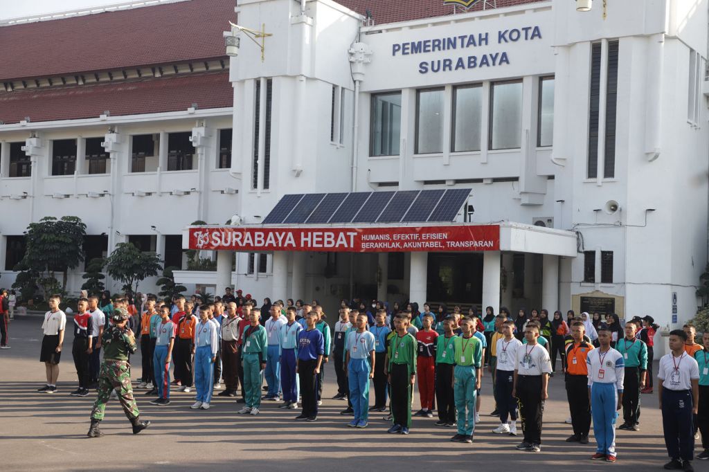SURABAYA (Realita)- Pemerintah Kota (Pemkot) Surabaya melalui Kepala Badan Kesatuan Bangsa dan Politik (Bakesbangpol) Kota Surabaya mulai menggelar pra pelatihan paskibraka Kota Surabaya tahun 2023 di halaman Balai Kota Surabaya, Jumat (21/7/2023). Sebanyak 100 pelajar SMA dan SMK yang sudah lolos seleksi hadir dalam kegiatan tersebut.