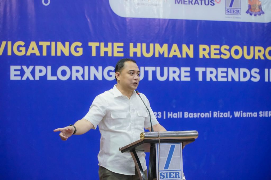 "Saya terkadang merasa sedih, saat membuka atau memberikan izin investasi baru seluas-luasnya, tapi yang bekerja bukan orang Surabaya. Karena investasinya di Surabaya, harusnya yang bekerja mayoritas juga orang Surabaya," kata Wali Kota Eri, saat memberikan pengarahan dalam acara Navigating The Human Resources Landscape: Exploring Future Trends In Industry, di Hall Basrani Rizal, Wisma SIER Surabaya, Kamis (27/7/2023).