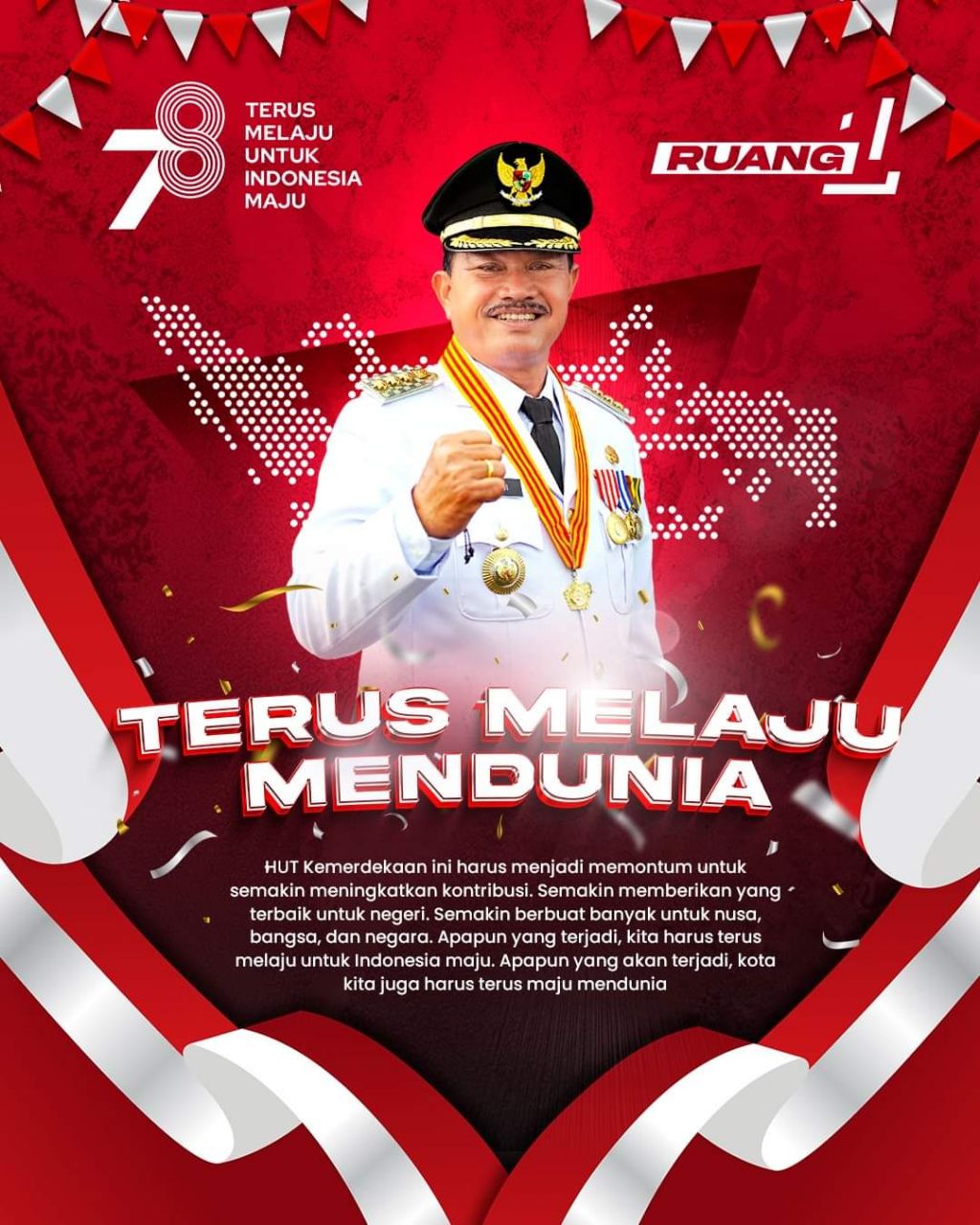 Momentum HUT Kemerdekaan ke-78 ini sejatinya masih sejalan dengan hari jadi kota kita. Kota kita berulang tahun yang ke-105 Juni lalu. Kita mengusung tema ‘Maju Mendunia’. Kota kita tidak hanya maju tapi juga mendunia. Saya inginnya begitu. Kalau mau maju yang total sekalian. Kita maju mendunia. Ini memang tidak mudah. Ini butuh upaya yang luar biasa. Butuh kerja kerja kita bersama. Maju mendunia ini tidak bisa hanya kerja dari balik meja. Era sekarang ini tidak cukup by data. Semua harus dibuktikan riilnya di lapangan. Karenanya, selalu saya ajak OPD saya untuk turun langsung di lapangan.