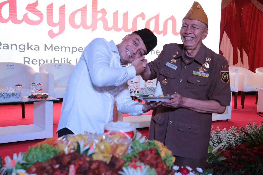 SURABAYA (Realita)- Wali Kota Surabaya Eri Cahyadi menggelar tasyakuran bersama veteran untuk memperingati Hari Ulang Tahun (HUT) ke-78 Republik Indonesia. Kegiatan ini digelar di depan rumah dinas wali kota, Jalan Sedap Malam Surabaya, Rabu (16/8/2023) sore.