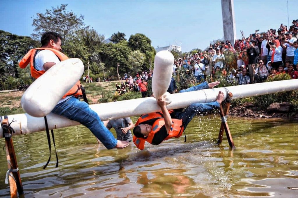 “lawannya sengaja ngalah ya pak? apalagi yang gebuk guling di atas air. Hahaha,” tulis @ardibhironx.kl