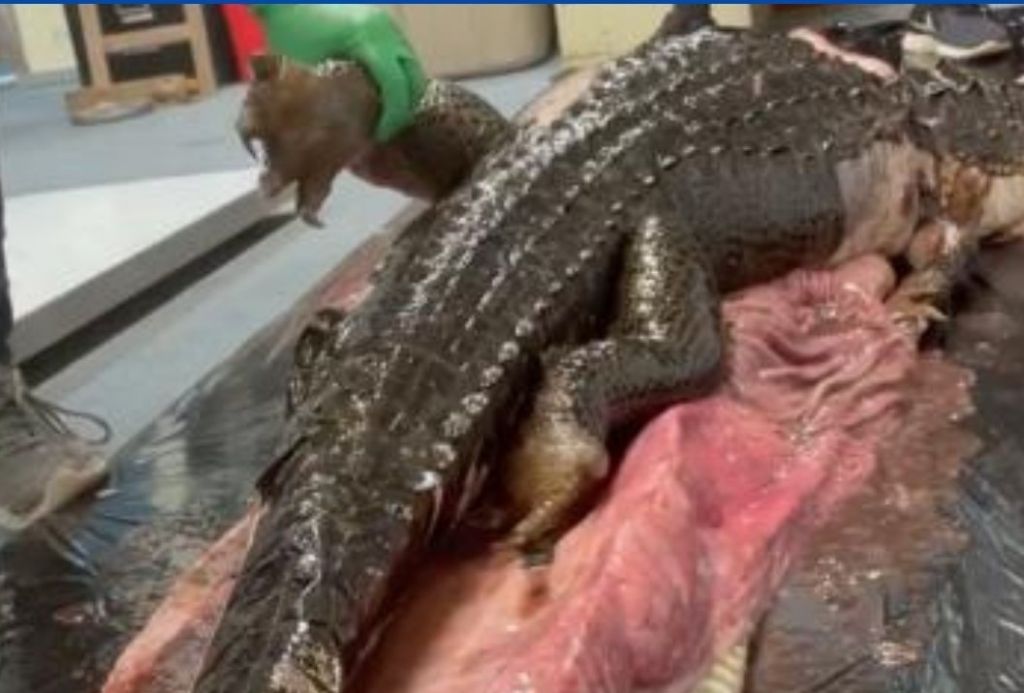 Di dalam tubuh ular Piton Burma tersebut terdapat bangkai seekor aligator dengan panjang 1,5 meter.