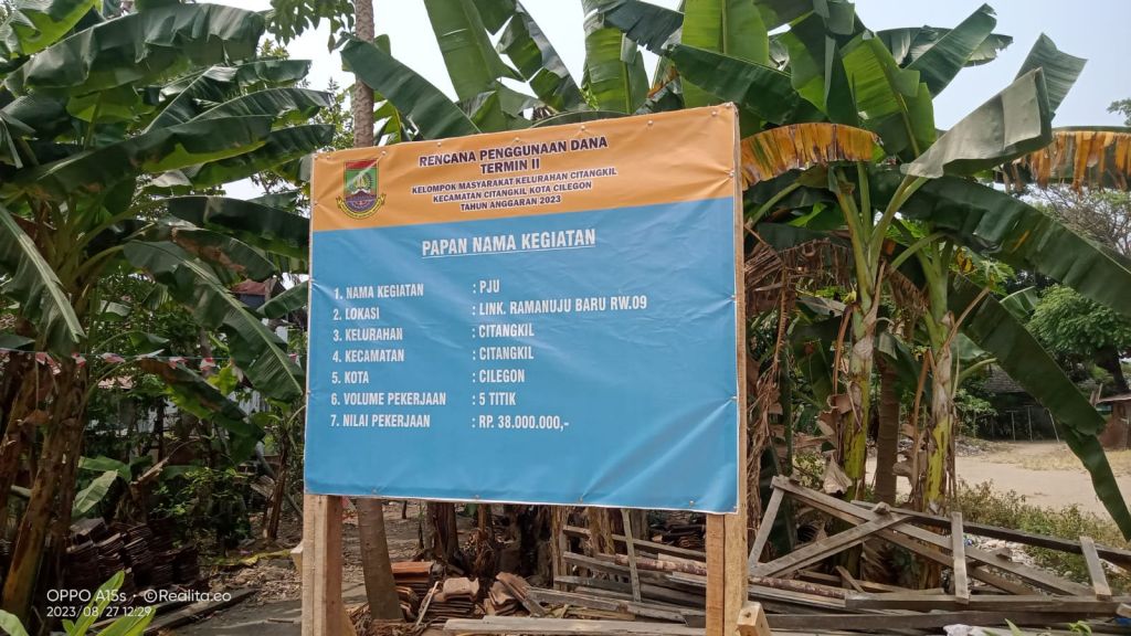KOTA CILEGON (Cilegon) - Penerangan Jalan Umum (PJU) di wilayah Link Ramanuju KP. Lukis RW 9, Kelurahan Citangkil, Kecamatan Citangkil, Kota Banten diduga tak sesuai anggaran. Demikian dikatakan Ade selaku warga di sana, Minggu (27/8/2023).