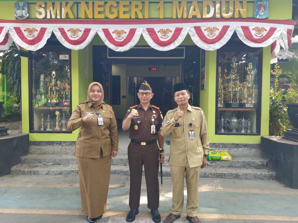 MADIUN (Realita) - Kejaksaan Negeri (Kejari) Kota Madiun bekerjasama dengan Cabang Dinas Pendidikan (Cabdindik) Wilayah Madiun mendatangi SMKN 1 Kota Madiun, Senin (28/8/2023). Kegiatan ini dalam rangka Jaksa Masuk Sekolah (JMS).