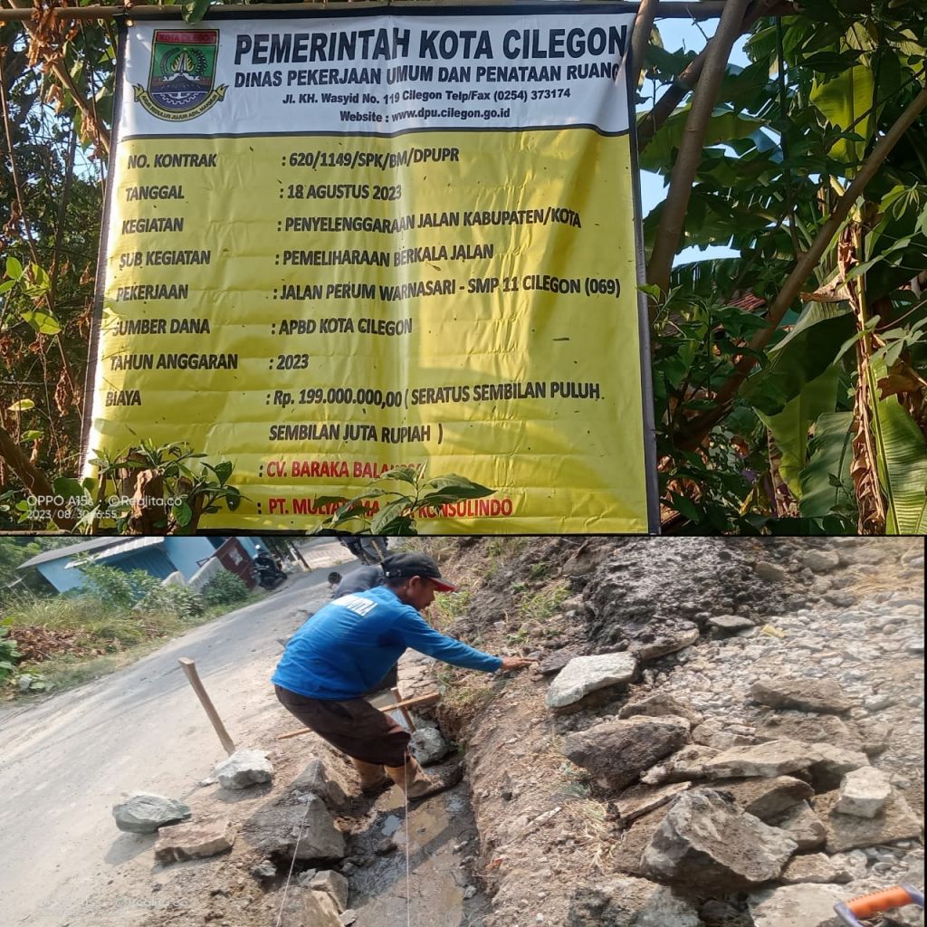 KOTA CILEGON (Realita)- Proyek Pemeliharaan Berkala Jalan, Drainase di Jalan Perum Warnasari - SMPN 11 Cilegon 069 menuai sorotan.