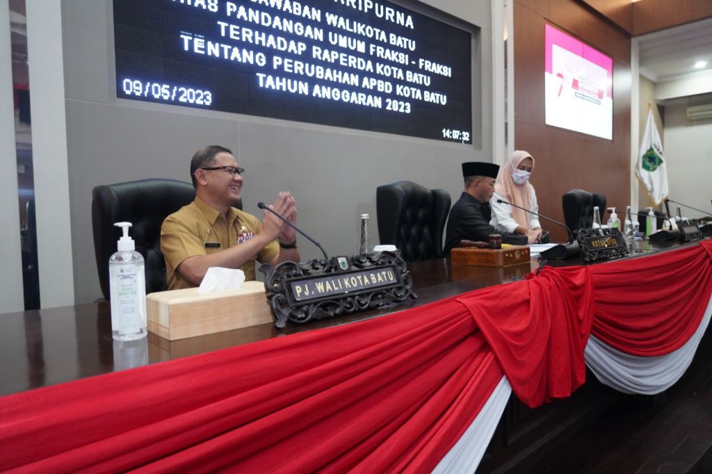 BATU (Realita)- Pemerintah Kota Batu, dalam Perubahan APBD Tahun 2023 sepakat untuk melaksanakan 11 masukan DPRD Kota Batu. Hal ini disampaikan Pj Wali Kota Batu, Aries Agung Paewai, saat menyampaikan jawaban atas pandangan fraksi DPRD Kota Batu dalam Sidang Paripurna DPRD di Gedung DPRD Kota Batu, Selasa (5/9/2023)