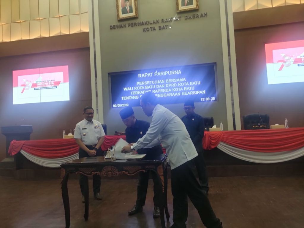 " Raperda ini merupakan bukti komitmen Pemerintah Kota Batu dan DPRD Kota Batu, untuk memastikan bahwa penyelenggaraan kearsipan di wilayah ini sesuai dengan peraturan dan standar yang berlaku. Dengan demikian, Ranperda ini akan menjadi payung hukum yang penting bagi pelaksanaan kearsipan yang baik dan efektif di Kota Batu," ujarnya.