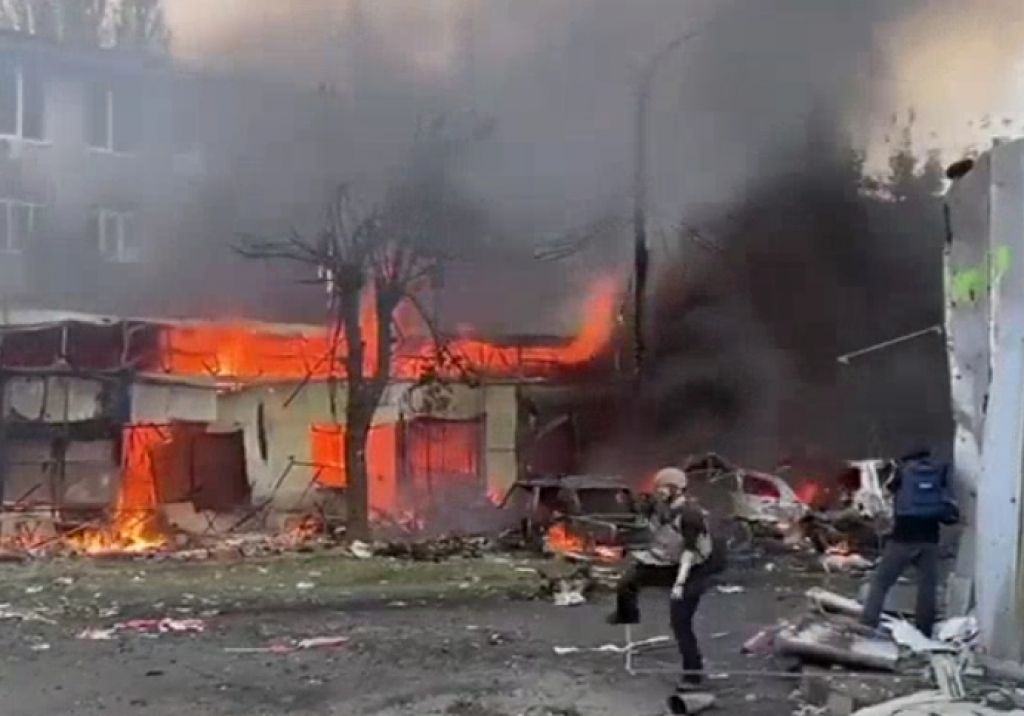 Rekaman video serangan yang dibagikan oleh Presiden Ukraina Volodymyr Zelensky menunjukkan saat warga sipil berjalan di sepanjang jalan pasar sebelum rudal menyerang pada Rabu sore.
