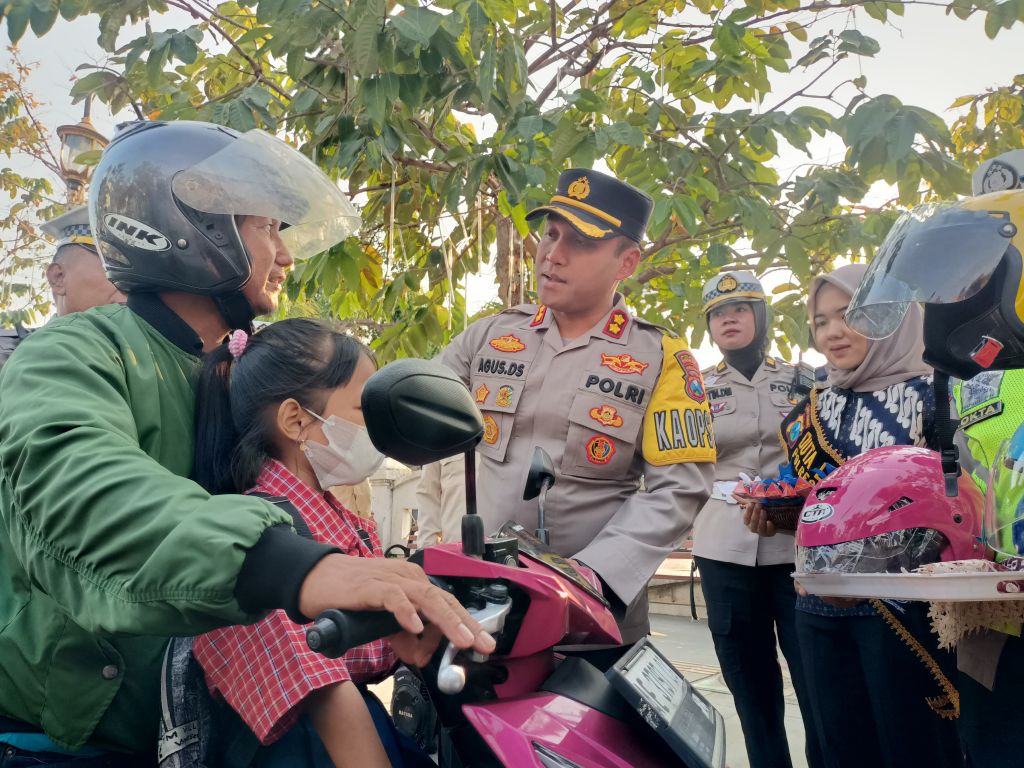 MADIUN (Realita) – Dalam rangka Operasi Zebra Semeru 2023, Satlantas Polres Madiun Kota membagikan sejumlah cinderamata bagi pengendara. Cinderamata ini diberikan kepada pengendara yang tertib dalam berlalu lintas.