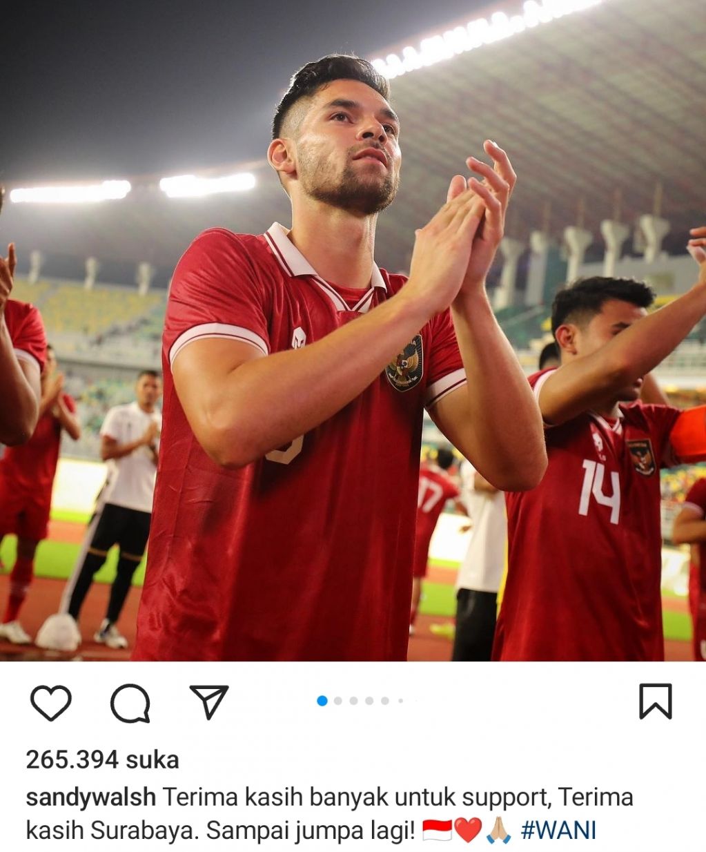 "Terima kasih banyak untuk support, terima kasih Surabaya. Sampai jumpa lagi, #wani," tulis Sandy Walsh dikutip dari akun Instagram pribadinya.