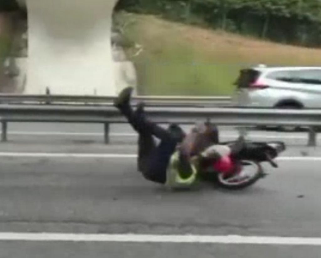 NEGERI SEMBILAN- Seorang Pengendara sepeda motor di Negeri Sembilan Malaysia nekad menerobos barikade Polisi Diraja Malaysia (PDRM) yang tengah menggelar razia di jalan.