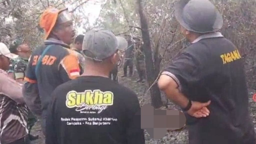 BANJARBARU- Sesosok mayat tanpa identitas ditemukan terpanggang di kawasan Gunung Kupang RT 1, Kota Banjarbaru, Kalimantan Selatan, Sabtu (23/9/2023) siang.