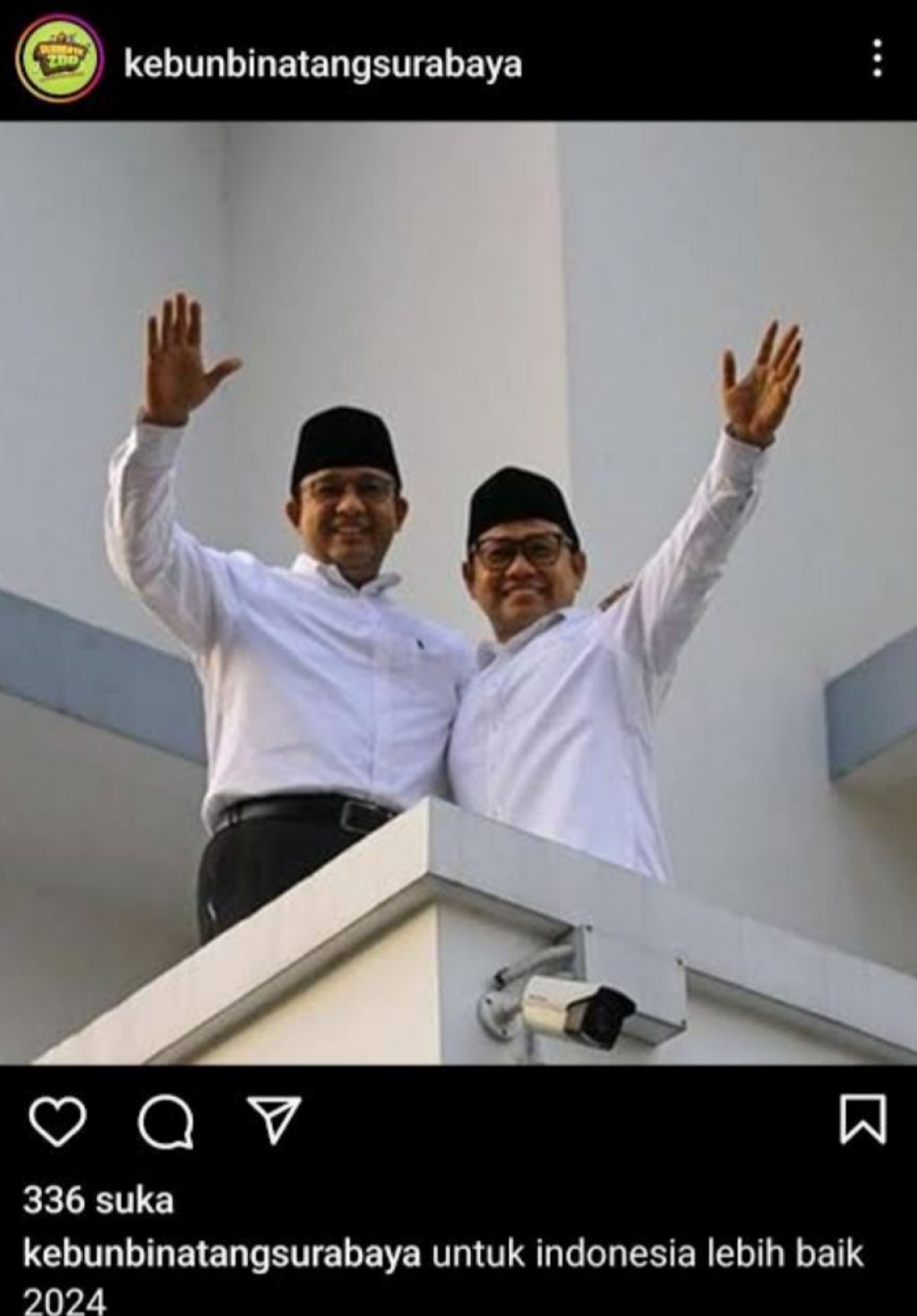 SURABAYA (Realita) - Komisi B DPRD Surabaya menyoroti munculnya foto pasangan calon presiden dan calon wakil presiden Anies-Muhaimin Iskandar, di akun media sosial Kebun Binatang Surabaya (KBS).