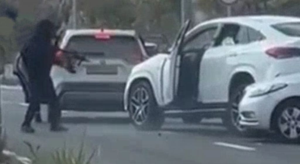 Dalam rekaman video yang beredar di media sosial, terlihat dua orang pembunuh bertopeng melepaskan tembakan ke arah mobil korban di pinggir jalan.