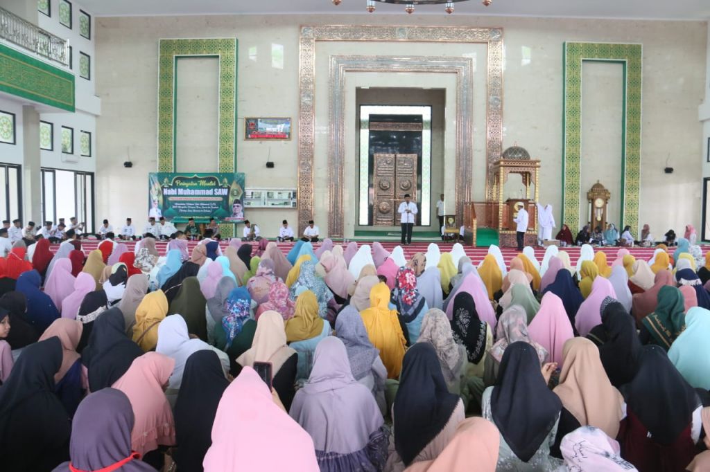 PRINGSEWU - Peringatan Maulid Nabi Muhammad SAW 1445 H Tingkat Kabupaten Pringsewu digelar di Masjid Agung Al-Asm'aul Husna, Islamic Centre Kabupaten Pringsewu, Pagargunung, Fajaragung Barat, Pringsewu, Rabu (04/10/2023).