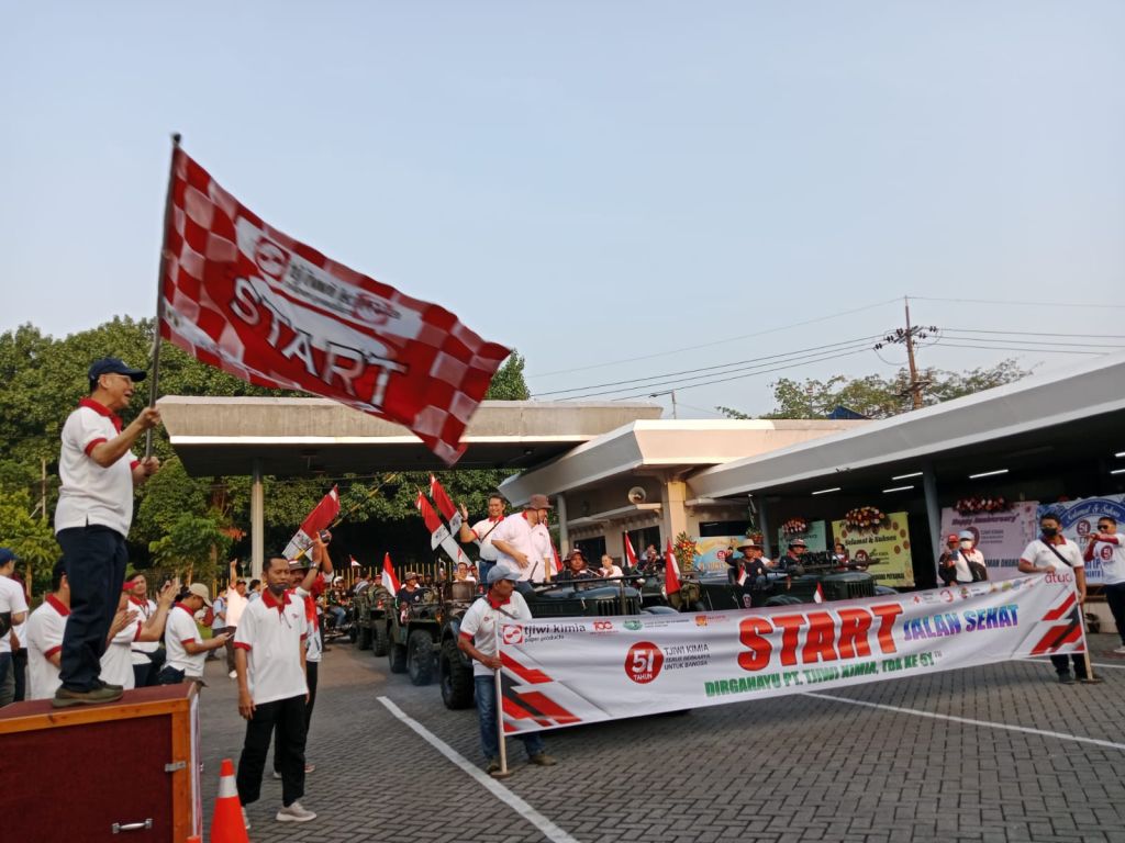 SIDOARJO (Realita)- Dalam rangka memperingati HUT ke 51, PT. Tjiwi Kimia menggelar jalan sehat dan gebyar hadiah bagi Staf karyawan dan karyawatinya dan gebyar UMKM mantan karyawan Tjiwi tujuanya untuk menyemangati seluruh karyawan pasca pandemi, Sabtu (07/10/2023).