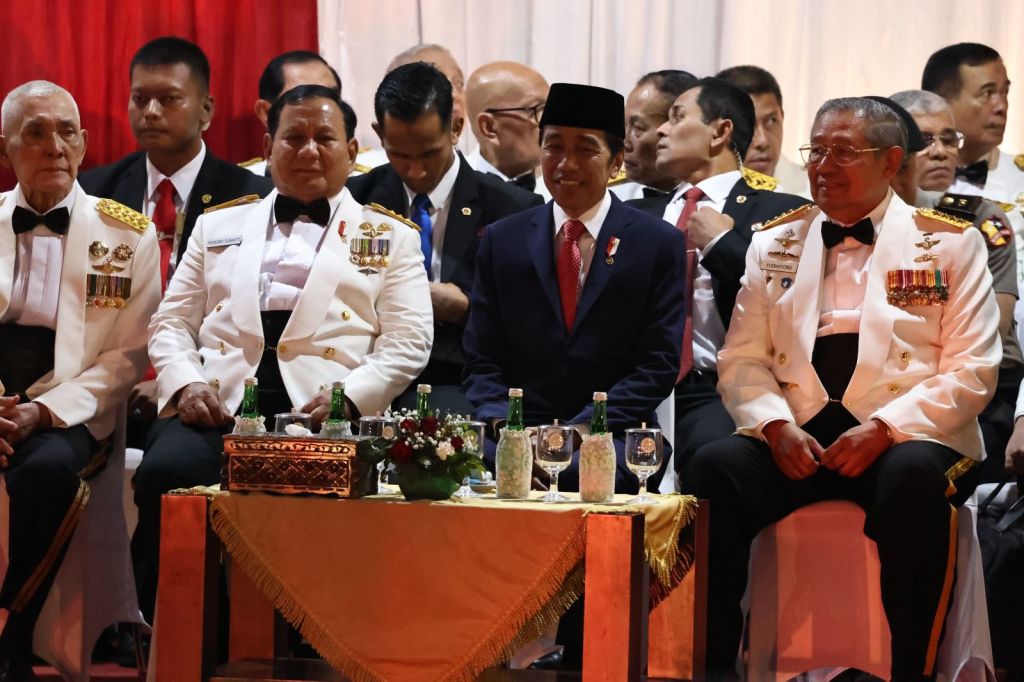 Kemudian, Presiden Jokowi yang didampingi Menhan Prabowo, Presiden RI ke-6 Susilo Bambang Yudhoyono (SBY), Kepala Staf Angkatan Darat (KSAD) Jenderal TNI Dudung Abdurachman dan Kepala Staf Angkatan Laut (KSAL) Laksamana Muhammad Ali menyaksikan parade (defile) yang diikuti tiga matra TNI yakni TNI Angkatan Darat, TNI Angkatan Laut, TNI Angkatan Udara dan Kepolisian Negara Republik Indonesia serta Komcad.