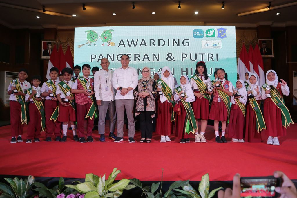 SURABAYA (Realita)- Wali Kota Surabaya Eri Cahyadi bersama Ketua TP PKK Surabaya Rini Indriyani Eri Cahyadi menyerahkan piagam penghargaan bagi pemenang pangeran dan putri lingkungan hidup Kota Surabaya 2023 di Graha Sawunggaling, Rabu (11/10/2023). Dalam acara tersebut, Wali Kota Eri juga ingin para pangeran dan putri lingkungan hidup itu bisa menjadi pemimpin, khususnya pemimpin di kampung-kampung mereka masing-masing.