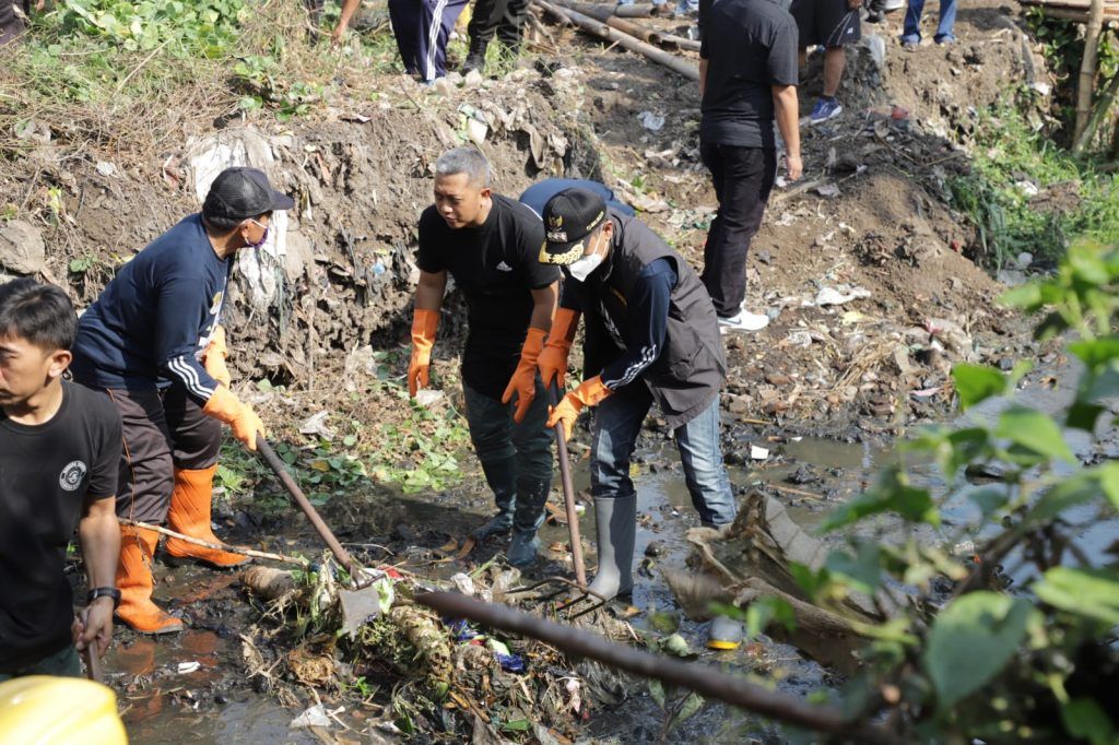 KOTA MALANG (Realita)- Penjabat (Pj) Walikota Malang, Dr. Ir. Wahyu Hidayat, M.M, ikut turun ke sungai membersihkan tumpukan sampah. Ia memimpin langsung Kerja Bhakti Bersih-Bersih Mudun Kali, yang dilakukan pada ruas sungai di Jl. Sebuku RW 08, Kelurahan Bunulrejo, Kecamatan Blimbing, Minggu (15/10/2023). Sebanyak 200 orang yang tergabung dalam sejumlah komunitas peduli lingkungan, bahu membahu turun bersama Wahyu membersihkan sungai.