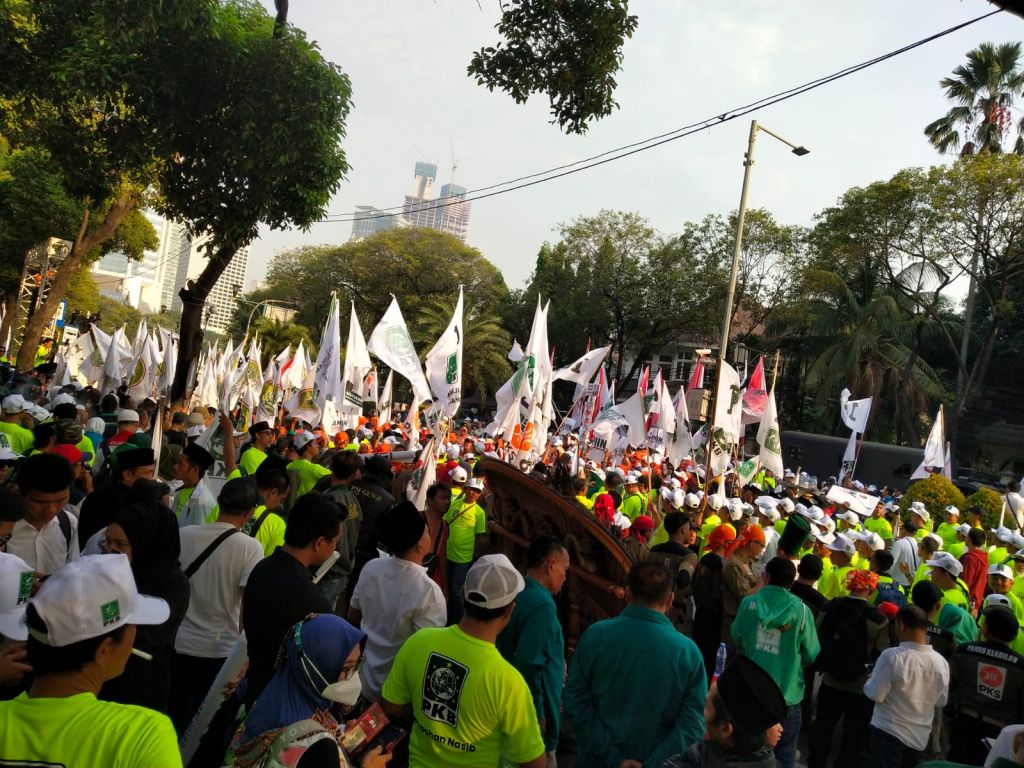 Sementara di belakang mereka Ketua Umum NasDem Surya Paloh beserta Presiden PKS Ahmad Syaikhu ikut mendampingi. Mereka dikawal oleh lautan massa dari NasDem Tower hingga KPU.ran