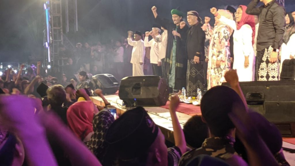 Tak hanya menikmati lantunan sholawat yang dilantunkan KH Muhammad Ali Shodiqin, ribuan Mafia Sholawat yang mayoritas generasi muda ini juga mendeklarasikan dukungan kepada Bakal Calon Presiden (Bacapres) dan Bakal Calon Wakil Presiden (Bacawapres) Ganjar Pranowo-Mahfuf MD tersebut.