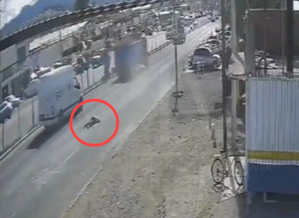 Peristiwa malang tersebut terjadi di dekat Terminal Bus kota ini di Hidalgo, dan terekam oleh kamera pengintai yang terletak di area tersebut.