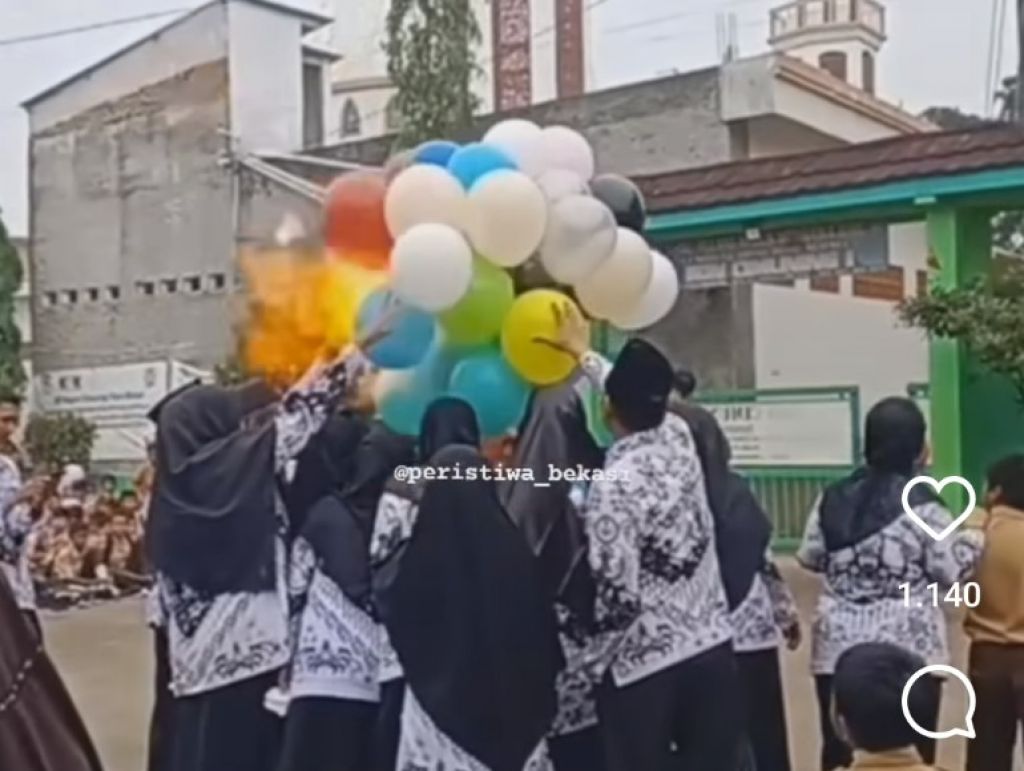 "Balon meledak dan melukai beberapa orang. Kejadian di SDN Cimuning 1, Mustika Jaya Bekasi, Sabtu (25/11/2023)," tulis akun instagramnya lensa_berita_jakarta dikutip Sabtu (25/11/2023).