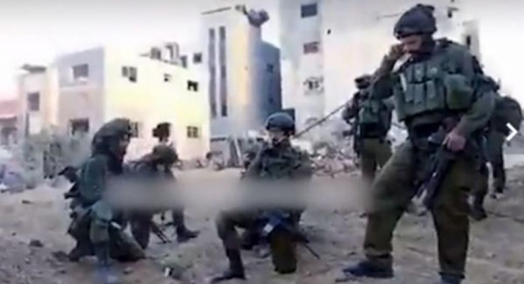 Dalam video berdurasi 43 detik itu tampak seorang anggota Pasukan Pertahanan Israel (IDF) memberikan perintah untuk meledakkan gedung yang berada beberapa ratus meter di belakangnya.