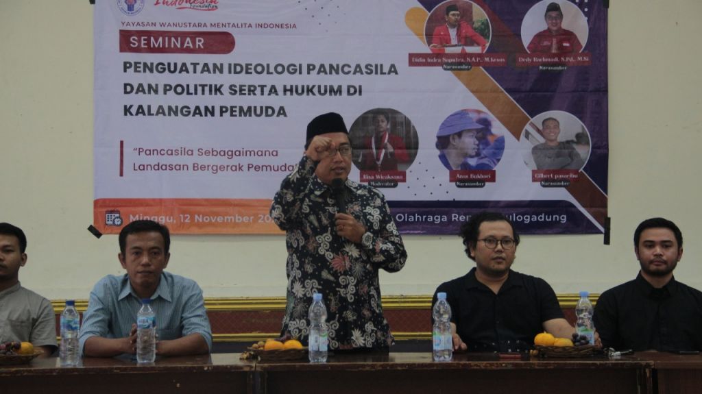 JAKARTA (Realita)- Wanustara Mentalita Indonesia Foundation telah melaksanakan sebuah Seminar Nasional yang bertemakan “Pancasila Sebagaimana Landasan Bergerak Pemuda”. Seminar Nasional tersebut di pandu oleh Risa Wicaksana selaku Moderator, Dedy Rachmadi. S.Pd., M.Si, Didin Indra Saputra. S.A.P., M.Kesos, dan Anas Bukhori selaku Narasumber.