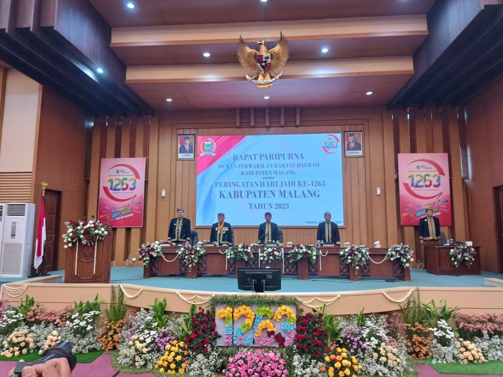KABUPATEN MALANG (Realita)-Memperingati Hari Jadi Kabupaten Malang ke-1262, yang jatuh setiap tanggal 28 November, Dewan Perwakilan Rakyat Daerah (DPRD) Kabupaten Malang menggelar rapat paripurna istimewa di Ruang Sidang Gedung DPRD Kabupaten Malang, Senin (28/11/2022).