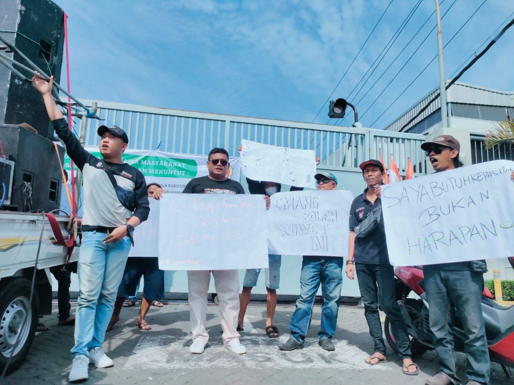SIDOARJO (Realita)- Puluhan warga dan Karangtaruna desa Jabaran Kecamatan Balongbendo Sidoarjo melakukan demo ke PT. Multi Spunindo Jaya (MSJ), Rabu (29/11/2023). Mereka menuntut kepada perusahaan itu supaya warga diterima untuk dipekerjakan di perusahaan tersebut.
