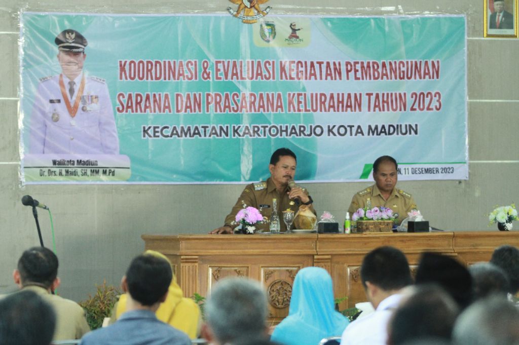 ‘’Hasil evaluasi progres pelaksanaan pembangunan fisik lancar dan bagus semua. Artinya, sesuai rencana,’’ kata Wali Kota Madiun, Maidi usai menggelar evaluasi di kantor Kecamatan Kartoharjo, Senin (11/12/2023).