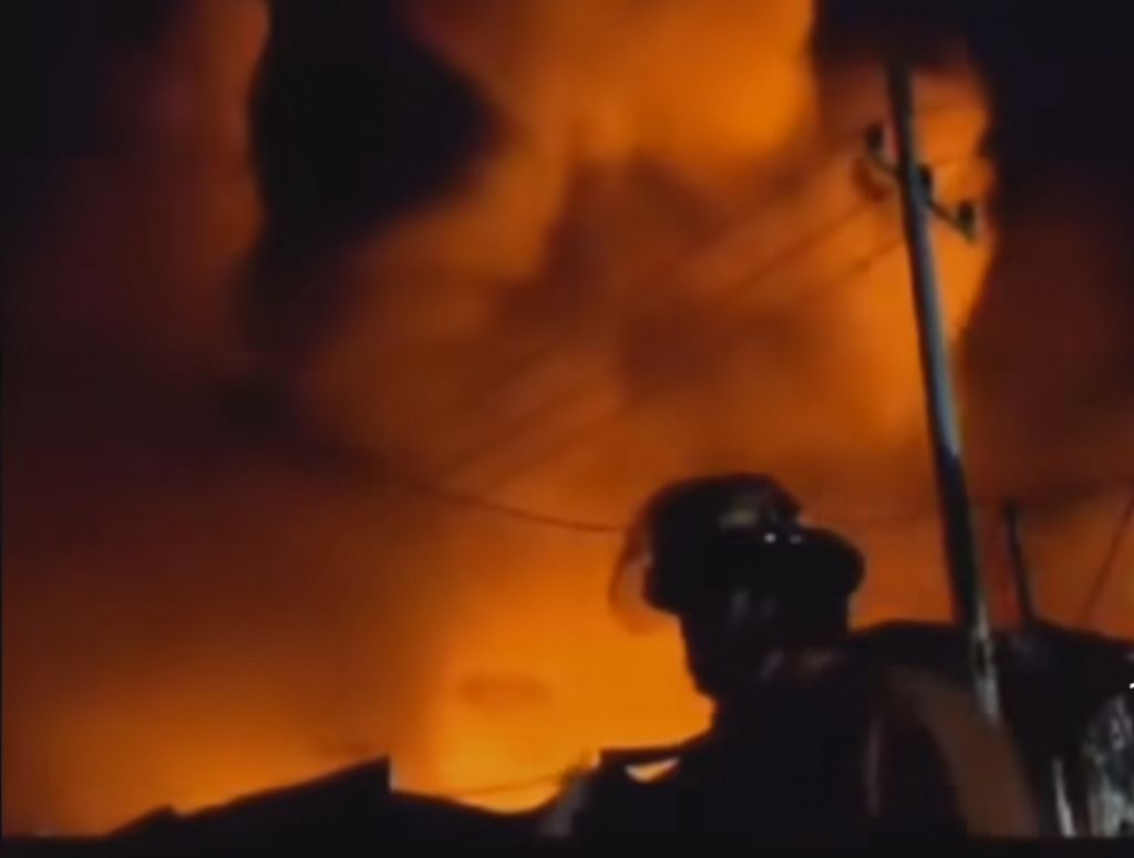 Kobaran api begitu ajek meletup ke awan hitam kelam menyerupai brokoli raksasa yang batangnya memanjang dan rambut 'kriwul' menggumpal menjadi gulungan besar yang terserap ke udara ditelan malam.